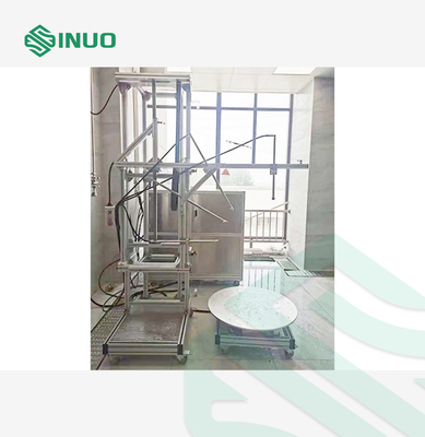 (1) Die oberen und fünf Oberflächen der Prüfprobe werden abwechselnd mit Wasser besprüht. (2) Bei der Prüfung der Schale in den Prüfungen a) und b) sollte die Wassertemperatur bei (80±5) °C gehalten werden. (3) Für kleine Gehäuse (maximale Größe ≤ 250 mm): Das Gehäuse sollte auf der Prüfvorrichtung montiert werden. Drehgeschwindigkeit: (5±1) r/min. Sprühwinkel: 0°, 30°, 60°, 90°.Die Prüfzeit für jede Position beträgt 30 Sekunden.. (4) Für große Gehäuse (maximale Größe ≥ 250 mm): Das Gehäuse sollte entsprechend der vorgesehenen Verwendung installiert werden. Die gesamte Außenfläche des Gehäuses wird gesprüht.Sprühen aus allen Richtungen, um die gesamte Oberfläche des Gehäuses zu bedeckenDer Sprühwinkel sollte möglichst senkrecht zur Sprühoberfläche liegen. |