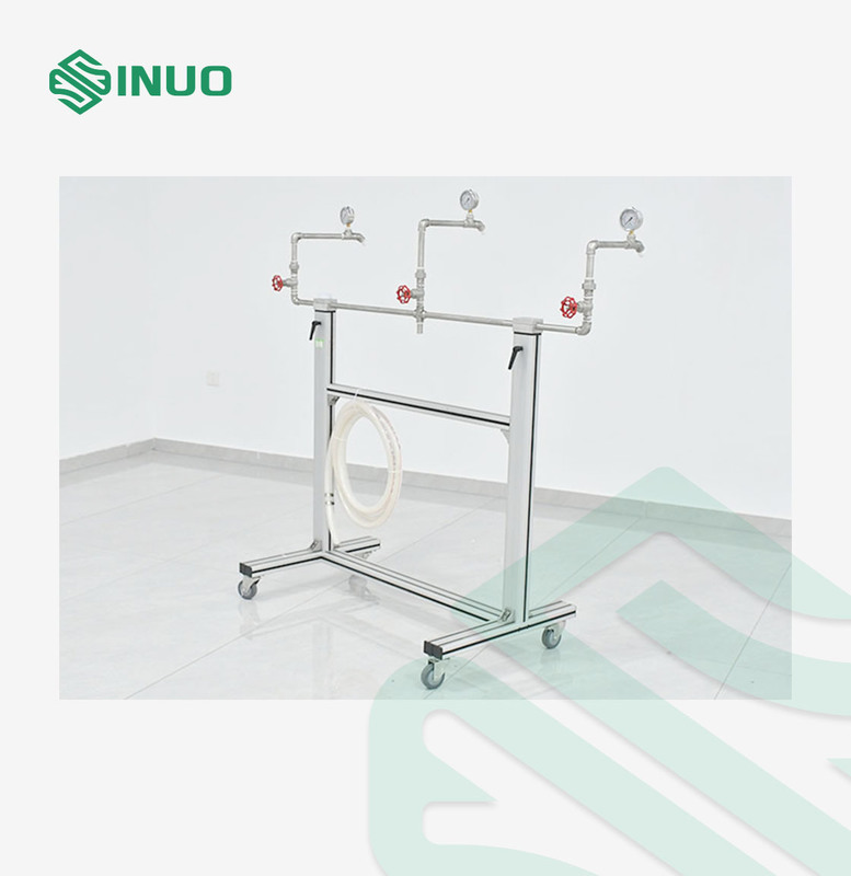 Equipped with three UL-standard spray nozzles, pressure meters, control valves, and a robust water supply frame, the system allows precise regulation of water pressure and nozzle distance to the specimen. Ideal for R&D labs, quality control, and certification testing, this chamber helps manufacturers verify waterproof performance and improve product durability.