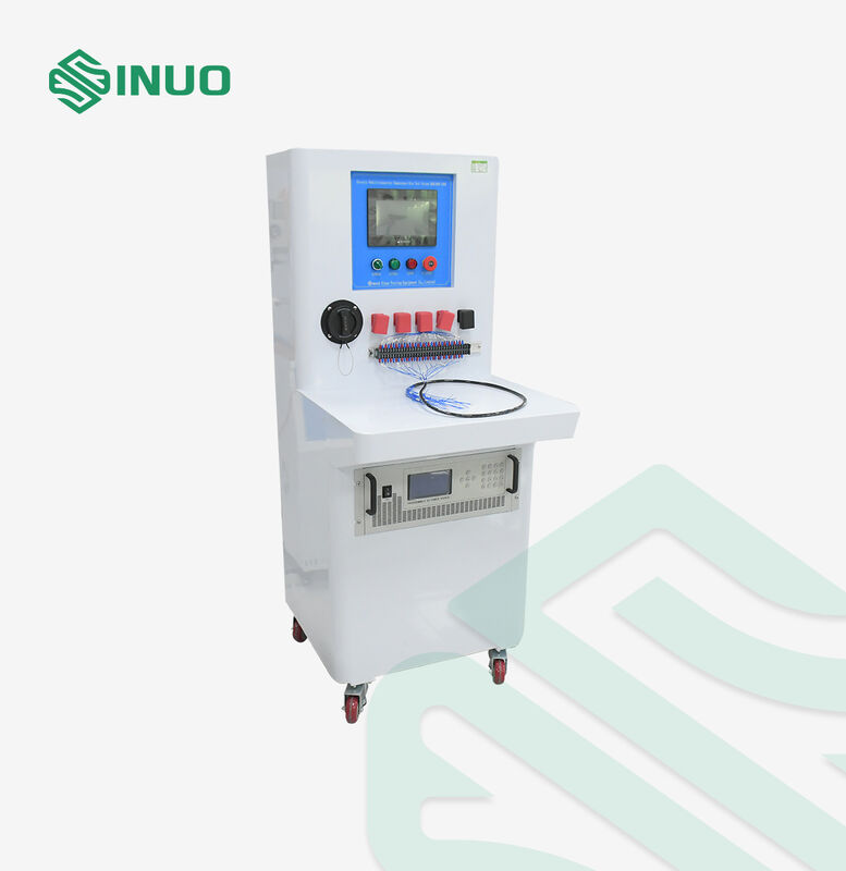 Das System zur Temperaturerhöhungsmessung besteht aus einem elektrischen Spannungsregler, einem Stromwandler, einer SPS-Steuerung, einem Stromsensor, einem humanisierten Touchscreen und einem fahrbaren Fahrgestell. Es kann den Prüfstrom stabil ausgeben und den Einfluss auf den Prüfstrom, der durch die Schwankung der Versorgungsspannung, der Anschlussleitung oder des Kupferstabs und des Widerstandswerts der Probe verursacht wird, eliminieren und die Genauigkeit des Testergebnisses verbessern. Das Netzteil verfügt über Funktionen wie geringe Verluste, hohen Wirkungsgrad, einfache Bedienung, vollständige Steuerung und Erkennung. Der Touchscreen kann den aktuellen Wert und die Temperaturwerte jedes Temperaturmesspunkts in Echtzeit anzeigen. Der Temperaturwert kann alle 2 Sekunden aufgezeichnet und ein Bericht generiert werden, der auf einem USB-Stick gespeichert und zur Anzeige und zum Ausdrucken auf einen Computer kopiert werden kann.